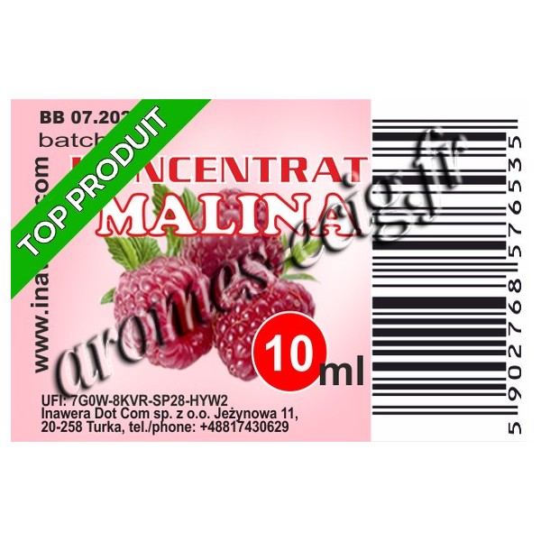 Arome concentré Inawera pour e-liquide DIY saveur framboise. Bon goût de framboise sucrée .