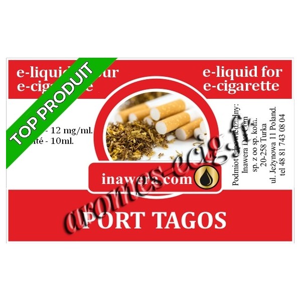 E-liquide Inawera tabac Port Tagos. Un liquide très proche du goût tabac blond de la vraie cigarette.